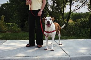 The Easy Walk Harness is designed to gently discourage dogs from pulling while walking on a leash. Unlike traditional collars, the Premier harness never causes coughing, gagging, or choking because the chest strap rests low across the breastbone. It's unique front-chested leash attachment stops pulling by steering your dog to the side and redirecting his attention towards you. And, its patent-pending martingale loop provides extra leverage for easy, relaxed control and prevents the harness for easy, relaxed control and preventing the harness from twisting and gapping. Quality Features: A quick snap buckle on both the shoulder and belly straps make it easy to get the harness on and off. Soft but strong nylon and four adjustment points provide maximum comfort and a reliable fit. The belly strap is an attractive complementary color- making it easy to tell up from down. It is available in red, royal blue, fawn, deep purple or black colors. |