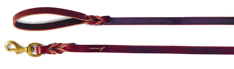 There is nothing like the feel and function of high quality leather and Premier's Latigo Leather Training Leads are the best available! Their burgundy Latigo Leads are cut from top grain hides tanned in the U.S.A. They have solid brass swivel-bolt snaps, with hand-braided ends and handles. |